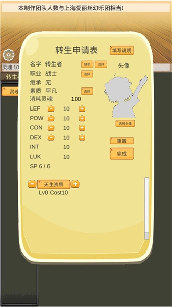 根据教程进行自己喜欢的形象和能力值进行角色创作。