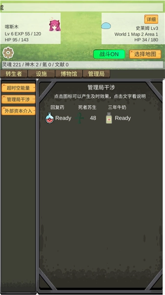 当然也会遇到管理者能力不足导致局面陷入劣势甚至难以挽回的情况,这时玩家便能出手干预,直接打破常规规则,让转生者继续为自己效力。