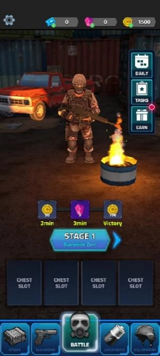 1、进入战场后,利用地图上的地形优势与武器掩护,抵御丧尸的围攻。