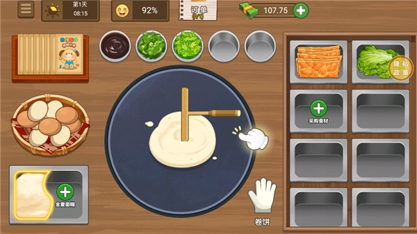 在这款游戏里,玩家能通过打理专属的煎饼小店收获满满的成就感与乐趣。游戏中设计了丰富多样的特色烹饪环节,引导玩家在体验过程中逐步掌握并熟练运用各种不同的烹饪技巧。