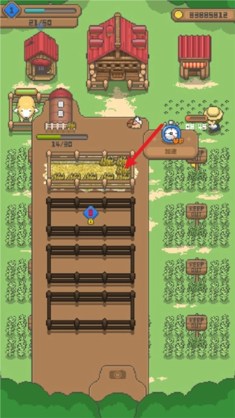 搭建围栏需要一定时长,在此期间,我们可以通过点击已存在的围栏来饲养一头牛。