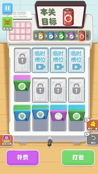 4.在合成水果派关卡里,玩家需要依据合成顺序来合成不同颜色的水果牌,完成关卡目标就能通关。