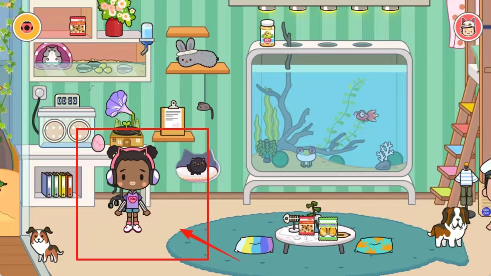 3、点击那个戴着粉色耳机的女孩,与她进行互动,协助她把书架上的物品整理好。