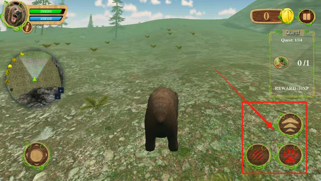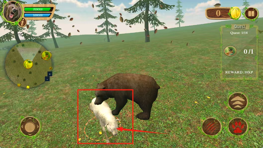 3、用左下角的摇杆控制熊的移动,想去哪儿就去哪儿。要是想攻击或者跟别的东西互动,就按右下角的按钮。
