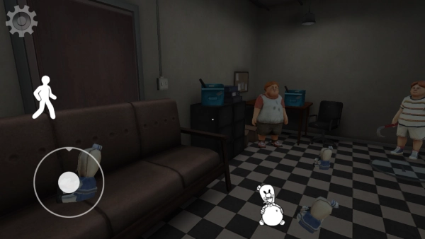 3. 左边中间位置的人形按钮可以操控角色下蹲,屏幕靠下区域的冰淇淋人偶按钮能生成替身人偶,记得灵活运用这个功能哦!