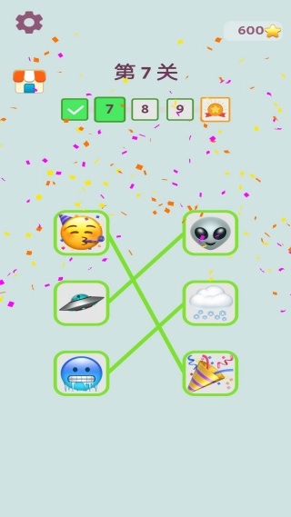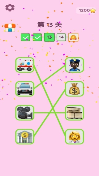1. 如下图所示,玩家在关卡中需要把存在逻辑关联的表情包连接起来。