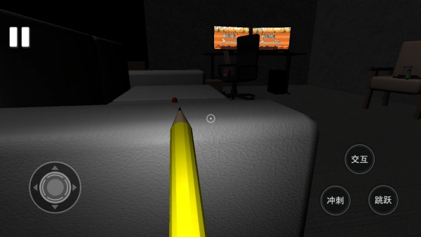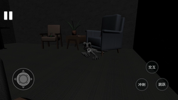 1. 游戏场景设定在光线极度昏暗、布局错综复杂的房间里,能见度很低,只有零星的微弱光源能大致勾勒出环境的轮廓。