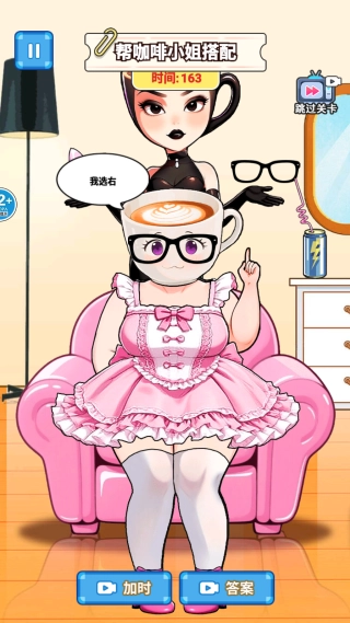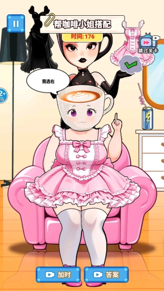 1、需依据关卡的要求与提示,为咖啡小姐挑选适宜的服装及配饰,完成各类穿搭任务后,能够解锁更多服装和配饰。