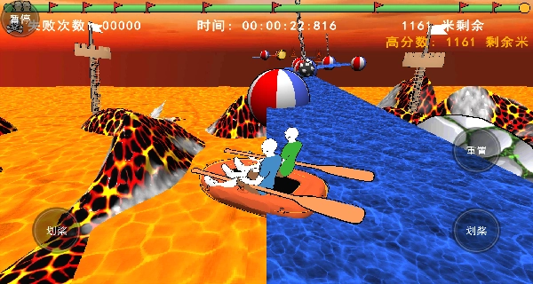 1、岩浆等危险元素增强紧迫感,小船一旦失衡即面临失败,提升游戏刺激感与专注力要求。
