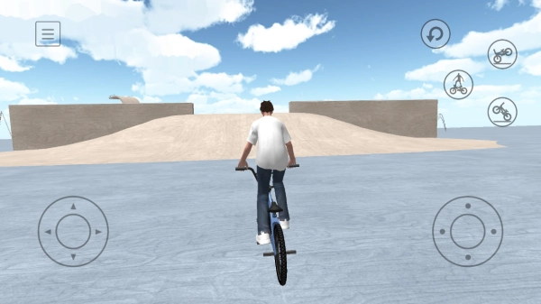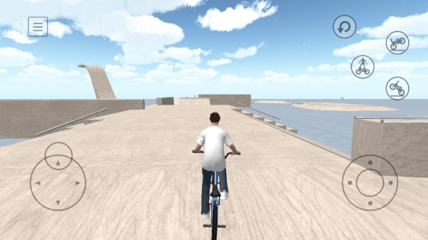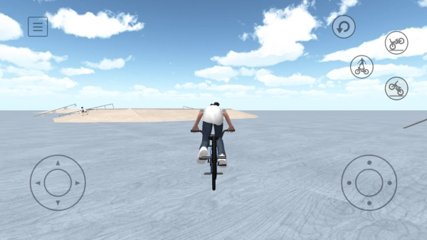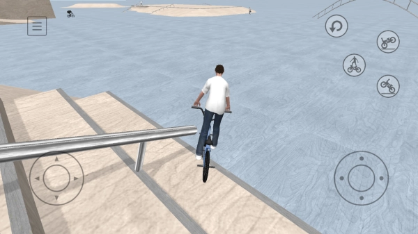 1、玩家能够在练习场里自由练习相关技巧,操控自行车在多样地形上骑行,运用各类动作组合出特技。
