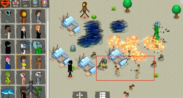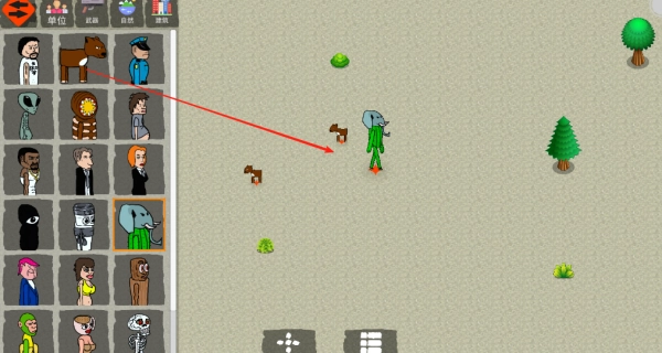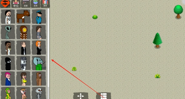 1、游戏开始时地图上什么都没有,点击创建按钮后,在左侧选择相应的角色或生物。