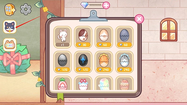 8、如果想要更多可爱的猫咪,点击旁边的猫咪按钮,在里面选择购买喜欢的蛋;