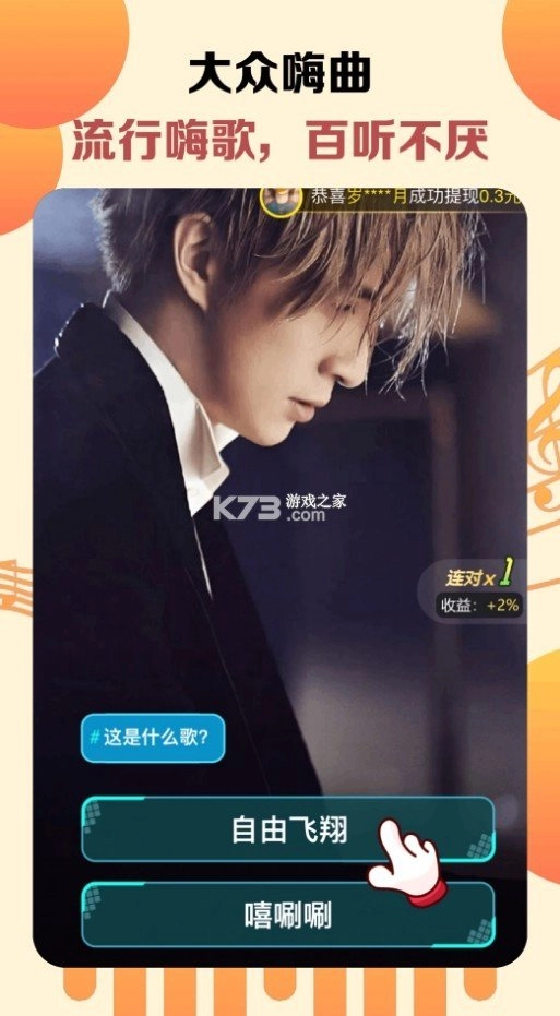 3、游戏开始先放一首歌,猜对就能领红包,满0.3元就能提现!金曲多多游戏评分:(5分)