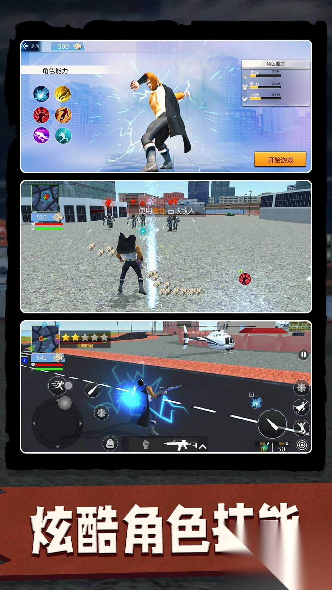 2. 拥有数十位原创超级英雄,每个角色都具备独特的背景故事和专属技能,玩家可挑选不同英雄,借助他们的能力开启冒险之旅。