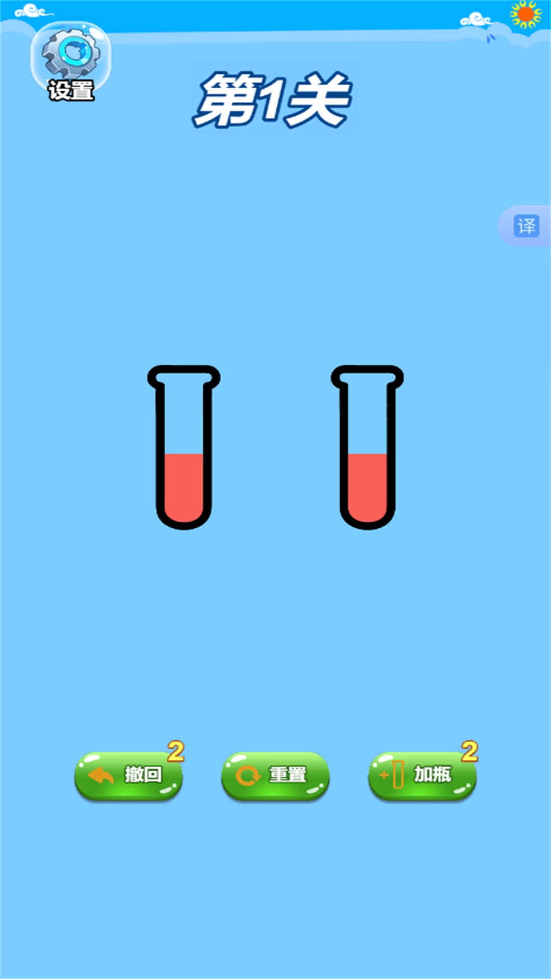 2、仔细观察各个瓶子中果汁的颜色分布状况,找到合适的倒果汁顺序,快速完成更多有趣的任务和挑战。