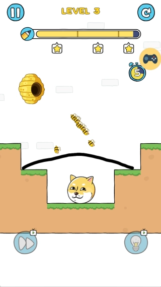 用手指在屏幕上随意画出线条,这些线条会变成实体——既可以成为狗狗能行走的路径,也能当作阻挡蜜蜂的墙壁,等绘制完成后就能开启关卡。