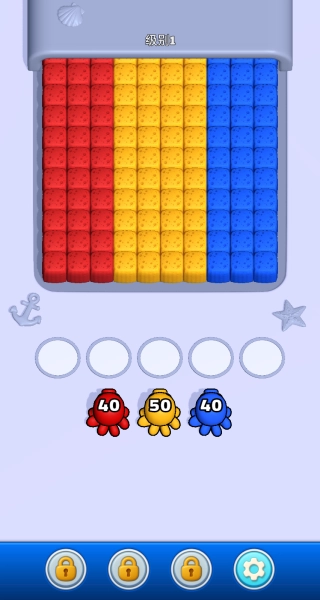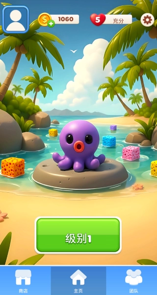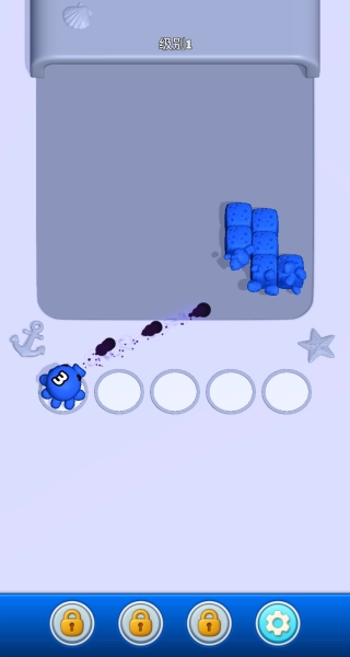 进入游戏后选择1级开启挑战,熟悉海底主题场景以及章鱼墨水消除的核心玩法逻辑。