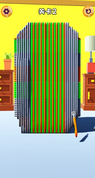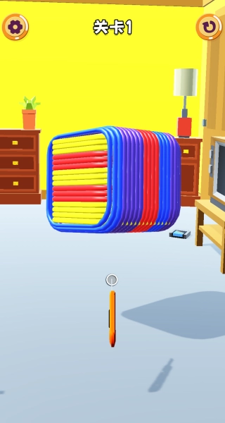 一款以切割橡皮筋为核心机制的超休闲解压游戏,玩家需要通过剪断屏幕上缠绕的各色橡皮筋,直至将它们全部清除。