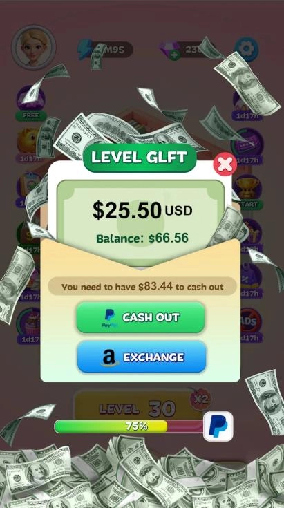 3、达到目标数量后即可完成关卡,获得金币与红包。