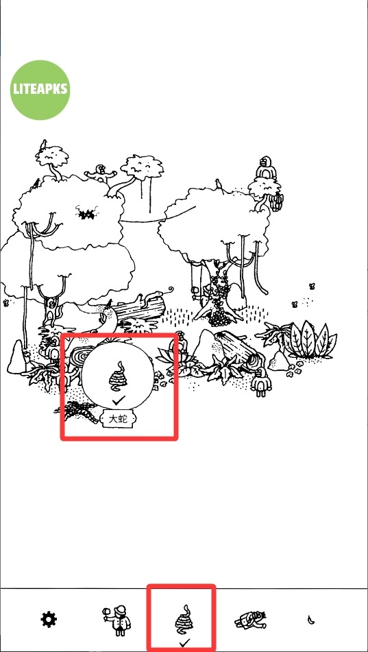 3、在右侧的大图里仔细搜寻,用手指缩放画面认真查看,角落和光线较暗的地方最容易藏着小人。