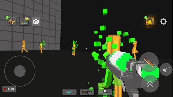 2.武器定制:通过收集像素块制作武器与装备,满足不同场景需求,近战与远程随意切换,灵活搭配战术,形成个性化战斗方式。