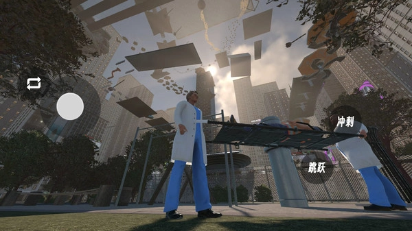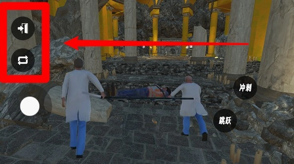 2.屏幕右侧的冲刺与跳跃按钮用于关键动作,合理把握时机越过障碍,保障担架伤员安全,提升通关效率。