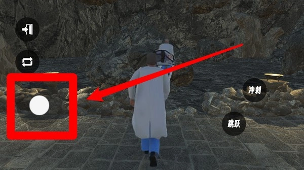 1.屏幕左下方的圆形虚拟摇杆是角色移动控制按钮,玩家可通过拖动操作,在复杂地形中保持平衡顺利前进。