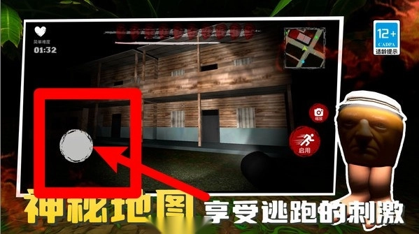 1.左侧虚拟摇杆:在昏暗木屋外场景中控制移动与转向,灵活走位躲避追击,配合手电照明探索可疑角落。