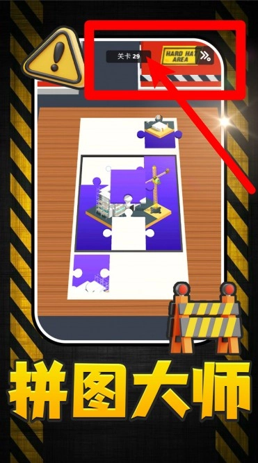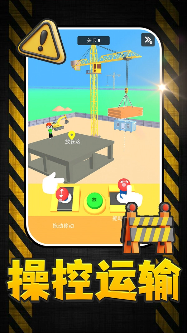 1.顶部区域显示关卡编号与快进按钮,并配有施工警示标识,用于查看当前关卡信息并随时切换播放速度。