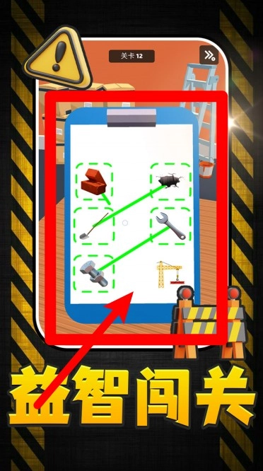 2.中央的连线面板需要将工具与对应对象匹配,按正确逻辑完成所有绿色连接,即可判定通过并进入下一阶段。