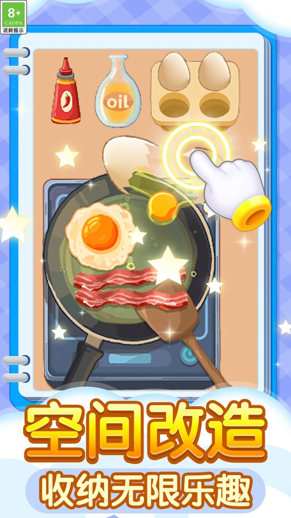 2.多样主题关卡:涵盖厨房、客厅、卧室等多种真实场景,每关设计独特,整理目标不同,保持新鲜感不重复。