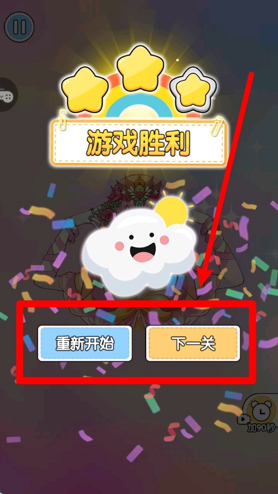 3.关卡胜利引导:游戏胜利后会弹出可爱界面,玩家可选择“重新开始”或“下一关”继续挑战不同收纳任务。