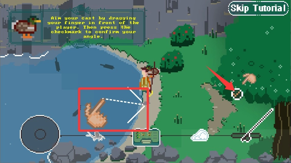 进入游戏后,你可以通过左右滑动屏幕来操控角色沿着河岸移动,目的是找到鱼群聚集的垂钓地点,同时要留意避开水流湍急的区域。