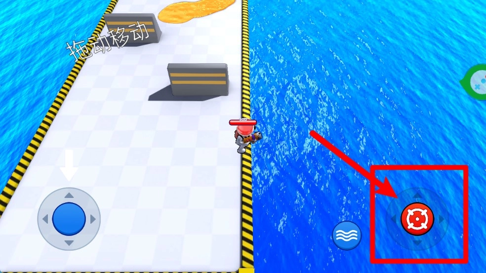 2.射击按键:右下角的红色瞄准按钮是射击功能,玩家需要精准锁定目标并点击此按钮,完成快速攻击和涂色操作。
