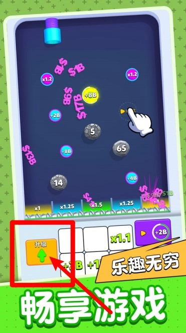 1.点击升级速度:点击下角速度按钮可提升速度等级,加快下落频率,让收益更迅速翻倍,节奏更快更刺激。