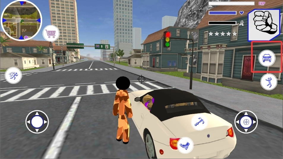3、看到路边停着的车辆时,点击车门图标即可。不同车型的速度存在差异,其中吉普的耐撞性最强,但行驶速度较慢。