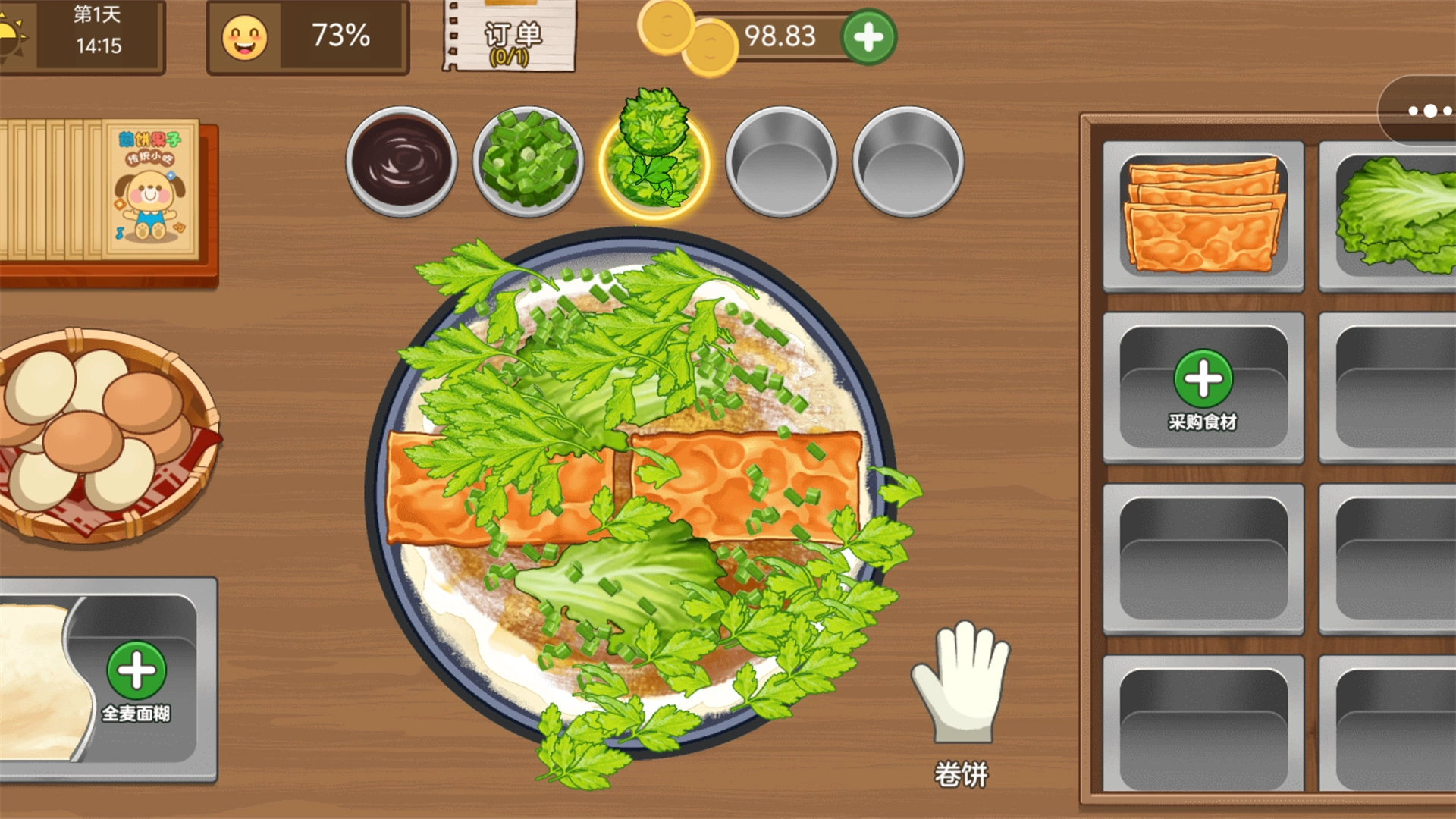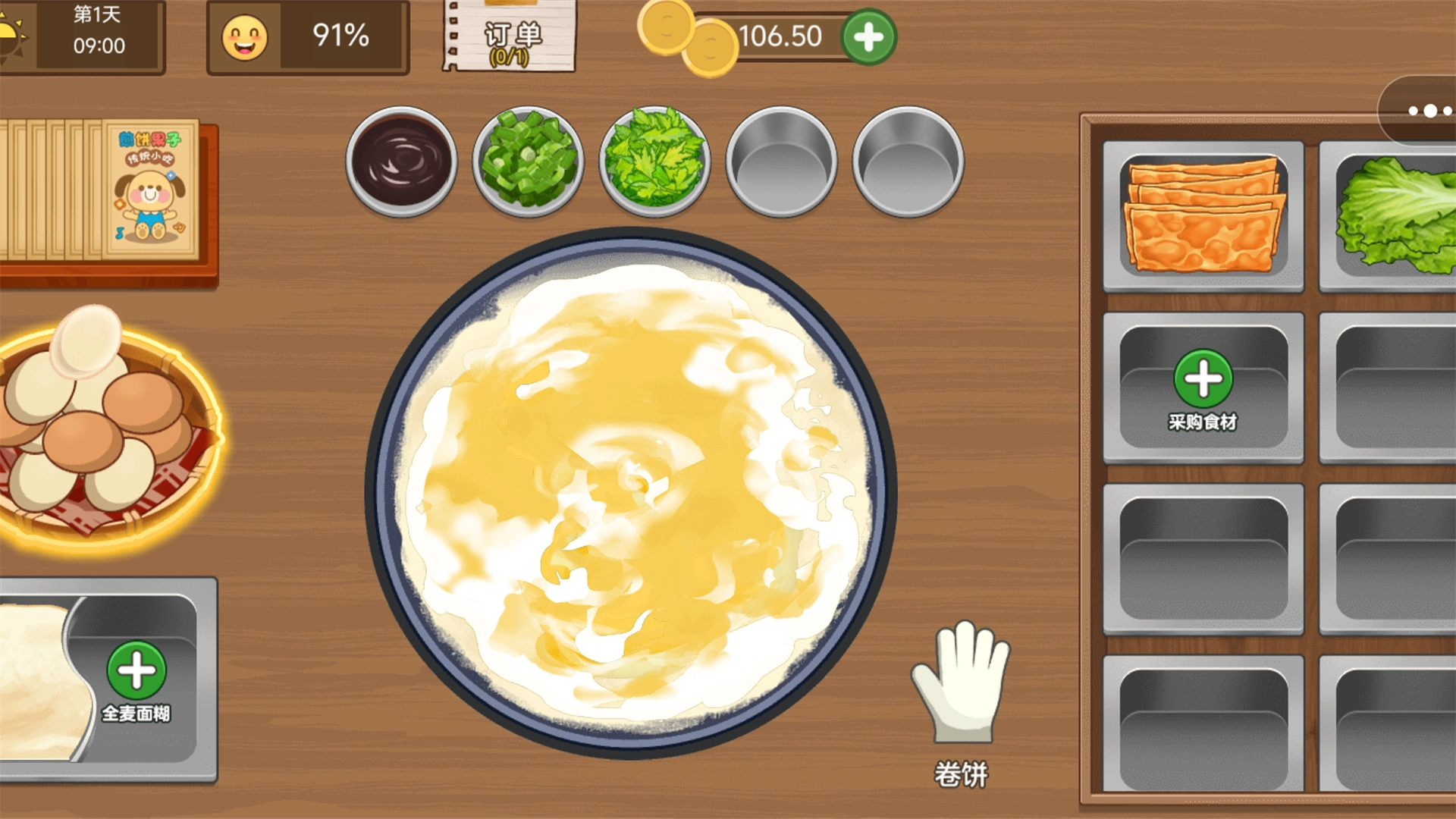 2.你得把每个步骤都做好,像摊饼、打蛋、加料这些细节都不能马虎,这样才能让玩家体会到亲手制作美食带来的成就感。