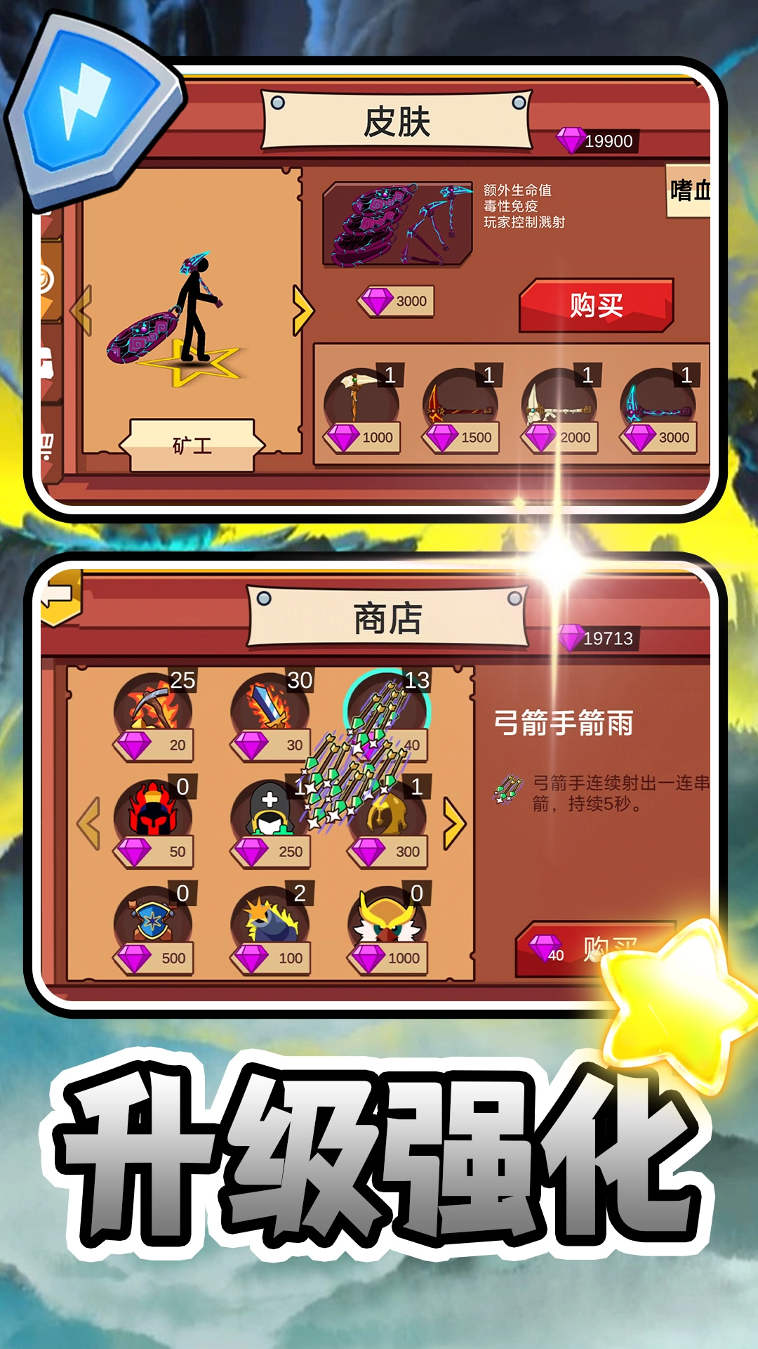3、资源别一股脑全投入升级,得留一部分去商店购买技能,关键战斗时靠技能来扭转局面。