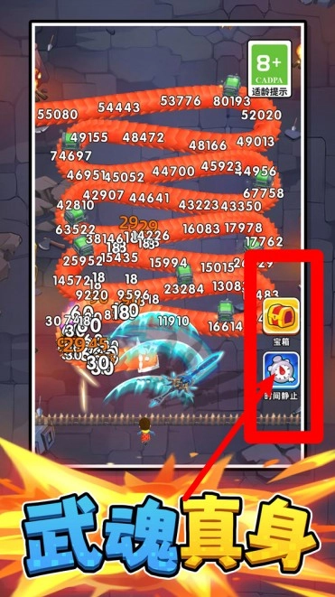 3.各类道具功能各异:右侧的“宝箱”“时间静止”等按钮,前者能开启奖励,后者可暂停敌人行动,在关键时刻足以扭转战局。