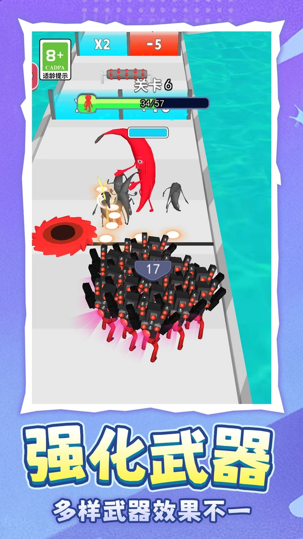 3.进阶成长机制:你可以通过收集队员来扩展自己的阵容,同时武器强化也能增强火力输出,成长的方向完全由你决定,使每一局的挑战都充满变数,为重复游玩提供持续的动力。