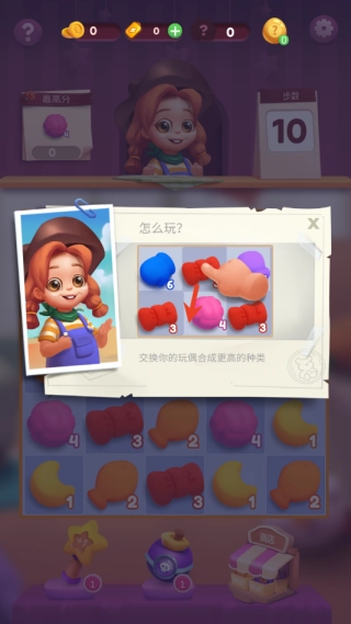 通过拖拽操作合并玩偶,当三个相同的玩偶被拖至一处时,它们会自动消除。