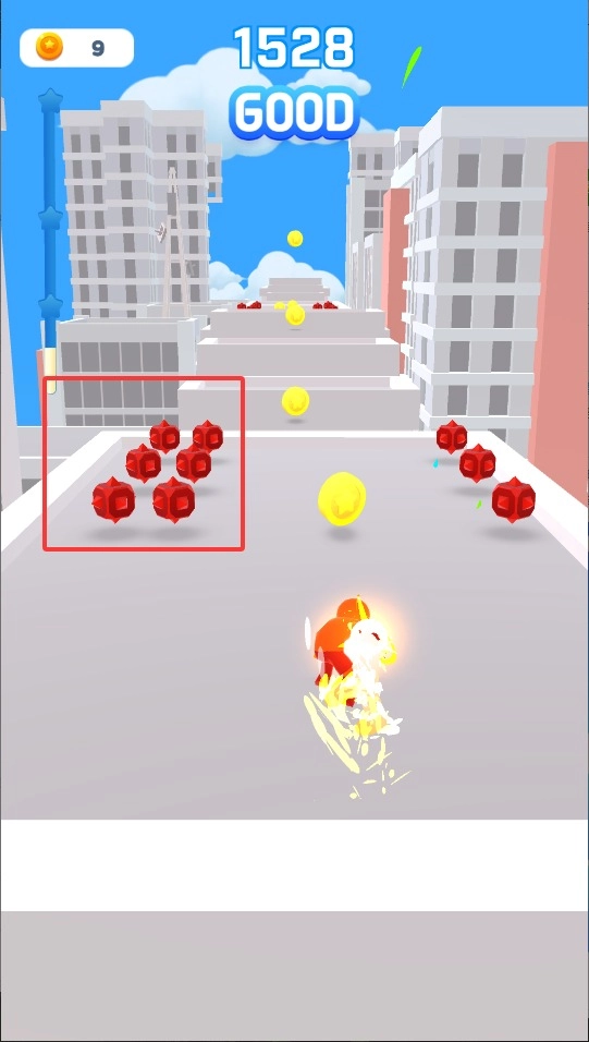 3、在保持行进节奏的同时尽量拾取金币,抵达终点时系统会根据收集数量结算奖励,解锁更多道具和皮肤。