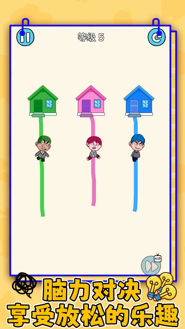 1. 匹配角色与房屋颜色:留意人物外观的色彩,将其与场景里房屋的颜色对应起来,保证每个角色都能前往属于自己的正确目标位置。