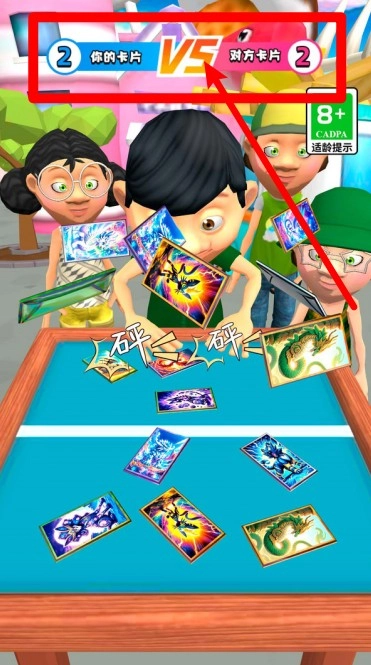 1.对战卡片计分:上方显示你的卡片数与对方卡片数,实时更新分数,帮助玩家掌握翻卡胜负的进展情况。