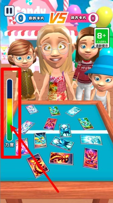 2.力度条精准控制:左侧有力度显示条,控制点击时机与力度才能提高翻卡成功率,找到节奏才能连翻多张。