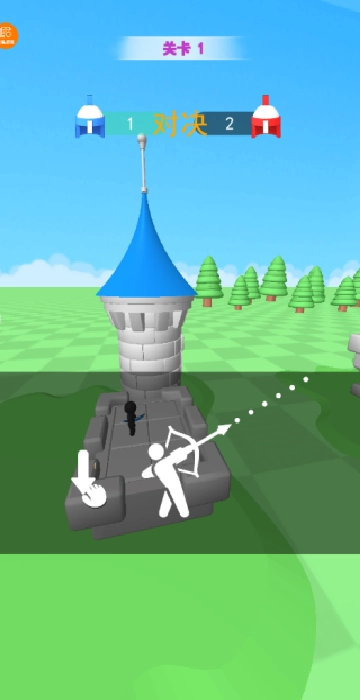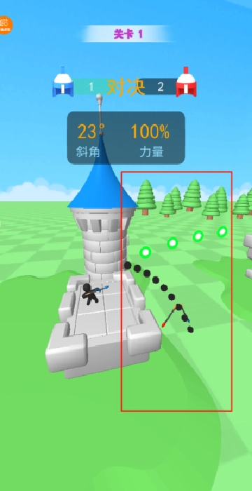 核心玩法是操控己方角色与对手角色展开对决,通过点击屏幕来调整武器的角度和力度。