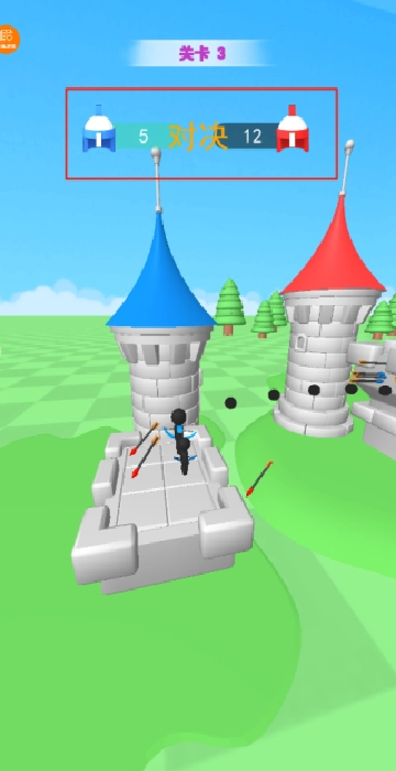 游戏采用回合制对战机制,玩家需要在每个回合里精准判断抛物线的轨迹与发射力度,用弓箭攻击对手。