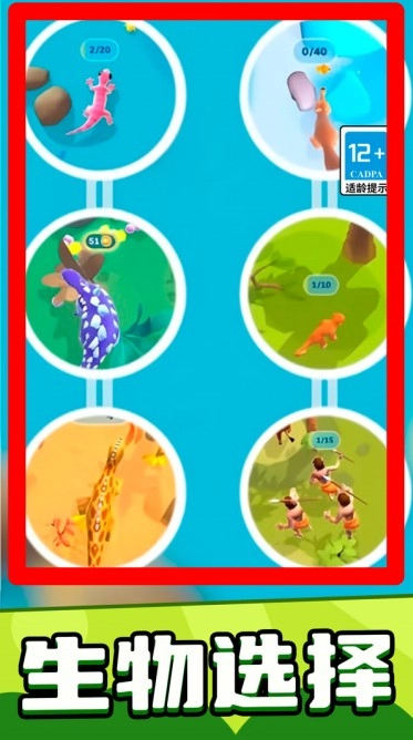 2.通过生物选择界面可自由切换进化路线,不同生物拥有各自特性与能力,决定接下来冒险方式与进化方向。