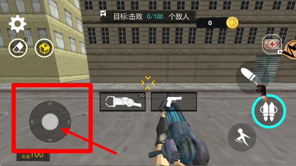 2. 借助左下角的圆形虚拟摇杆按钮来操控角色的行进方向,能够在城市里自由移动,还能灵活地躲避攻击。