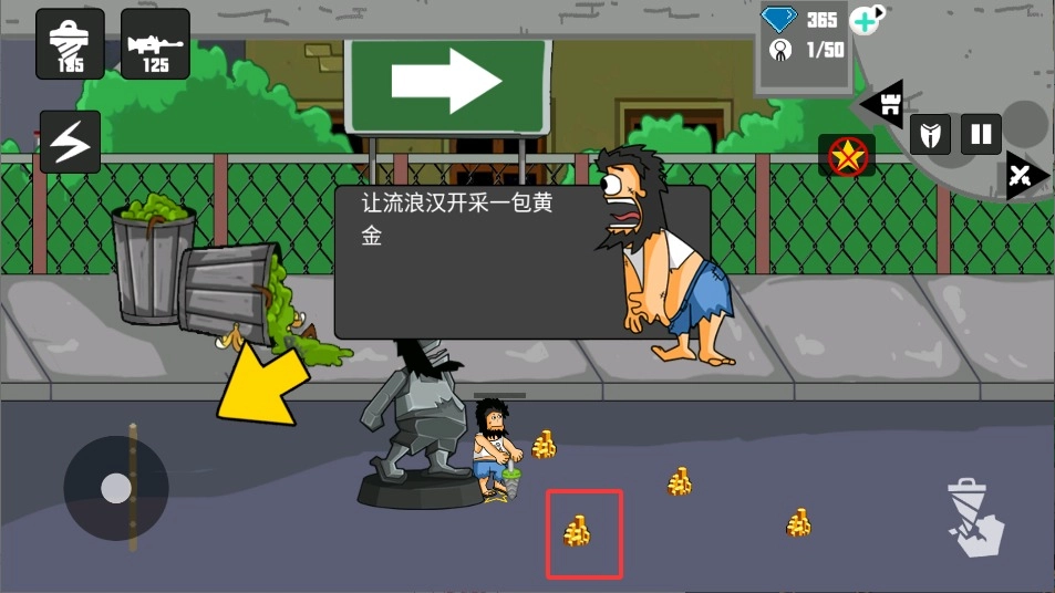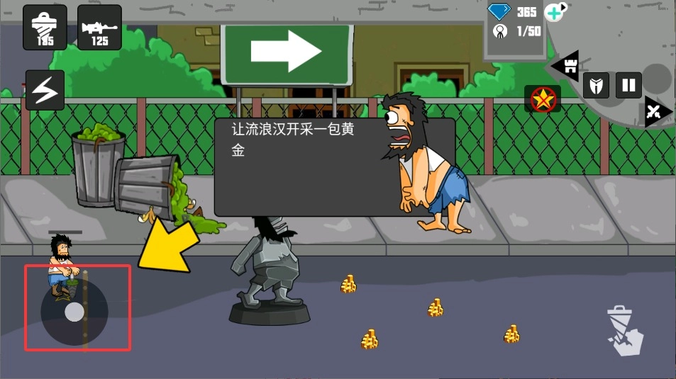进入游戏后,用手指滑动屏幕就能操控流浪汉移动;在城市街道里穿梭时,记得留意收集那些散落各处的金币和补给品。